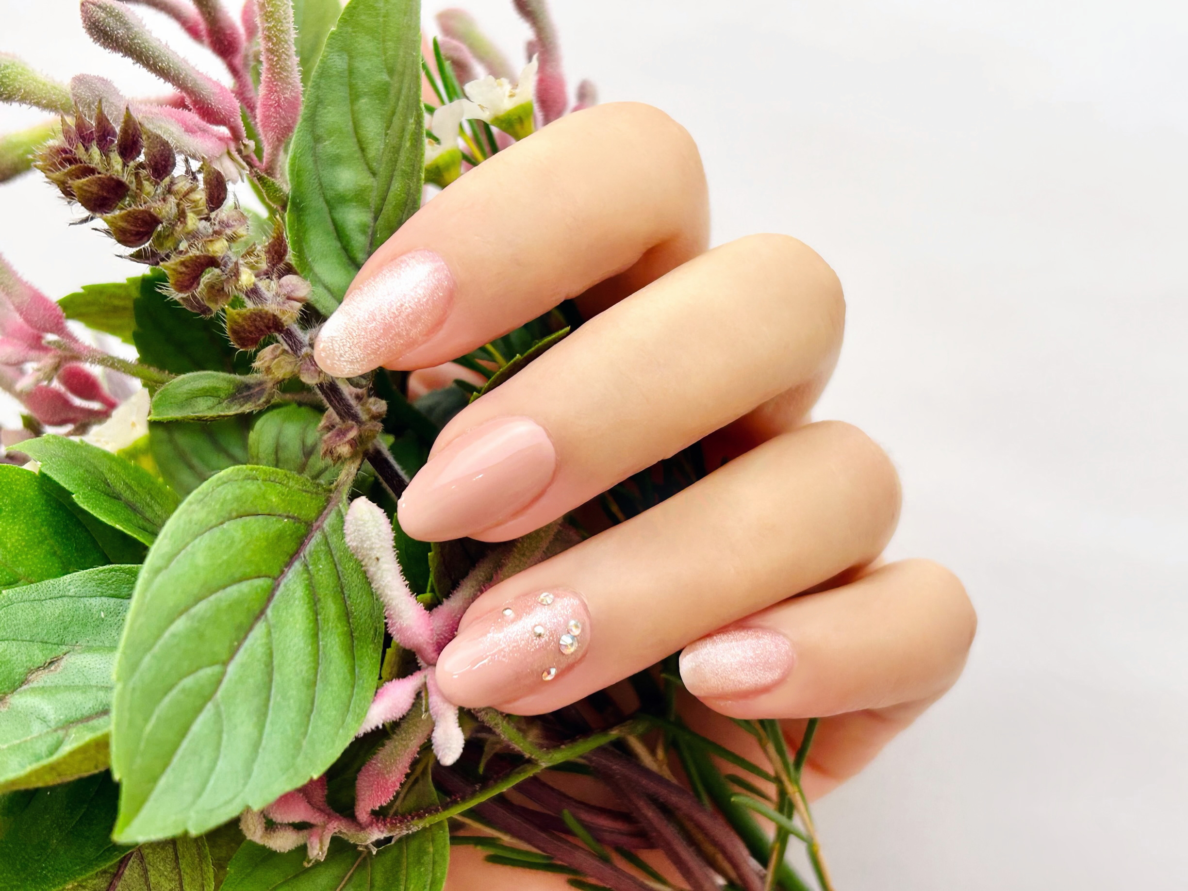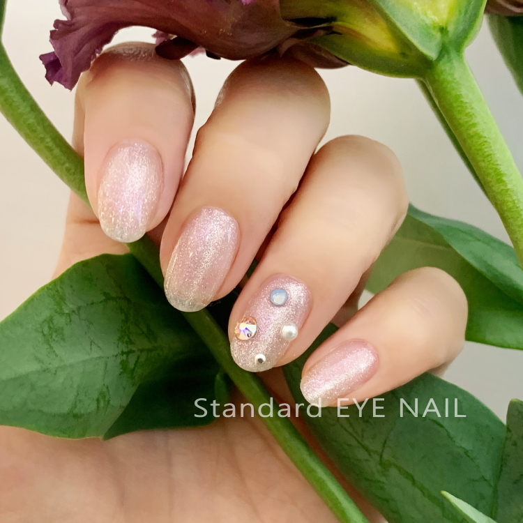 薬指はマグネットとストーンを根元から散らしてキラキラに♪